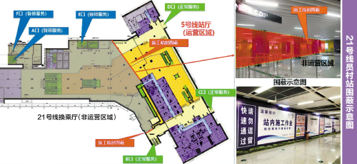 为什么说天河公园至员村区段是“归还”十一号线而不是由二十一号线“让出”?许坤杰解释,二十一号线起于天河公园站,止于增城广场站,在天河公园站与十一号线、十三号线二期进行换乘,以此实现这条东部线路与市区线路相连接。但由于十一号线、十三号线二期工程协调复杂、建设难度大、工期较长,二十一号线无法在短期内与既有市区地铁线年先行开工建设二十一号线时,就决定将属于十一号线的天河公园至员村区段纳入与其同步建设,并确定员村站建成后先“借用”作为二十一号线与五号线的换乘站,待十一号线开通运营时再“归还”。2019年12月二十一号线全线建成开通,员村站承担起“临时”换乘五号线年实现与市区地铁线天 其间两站部分区域围蔽!