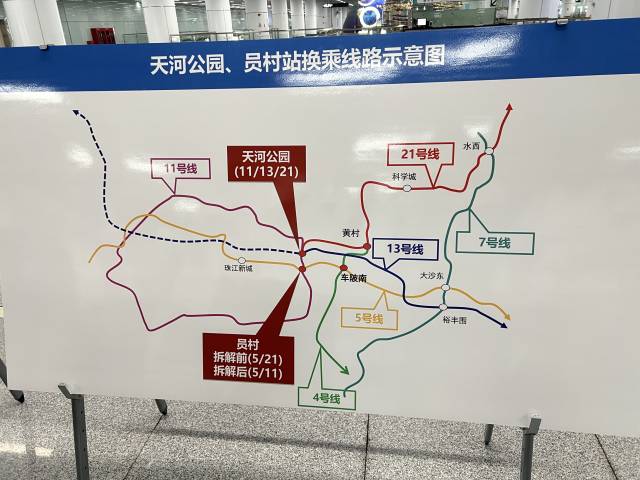 待11号线年底开通后,员村站将成为11号线号线的换乘站,天河公园站则作为11号线号线的换乘站。