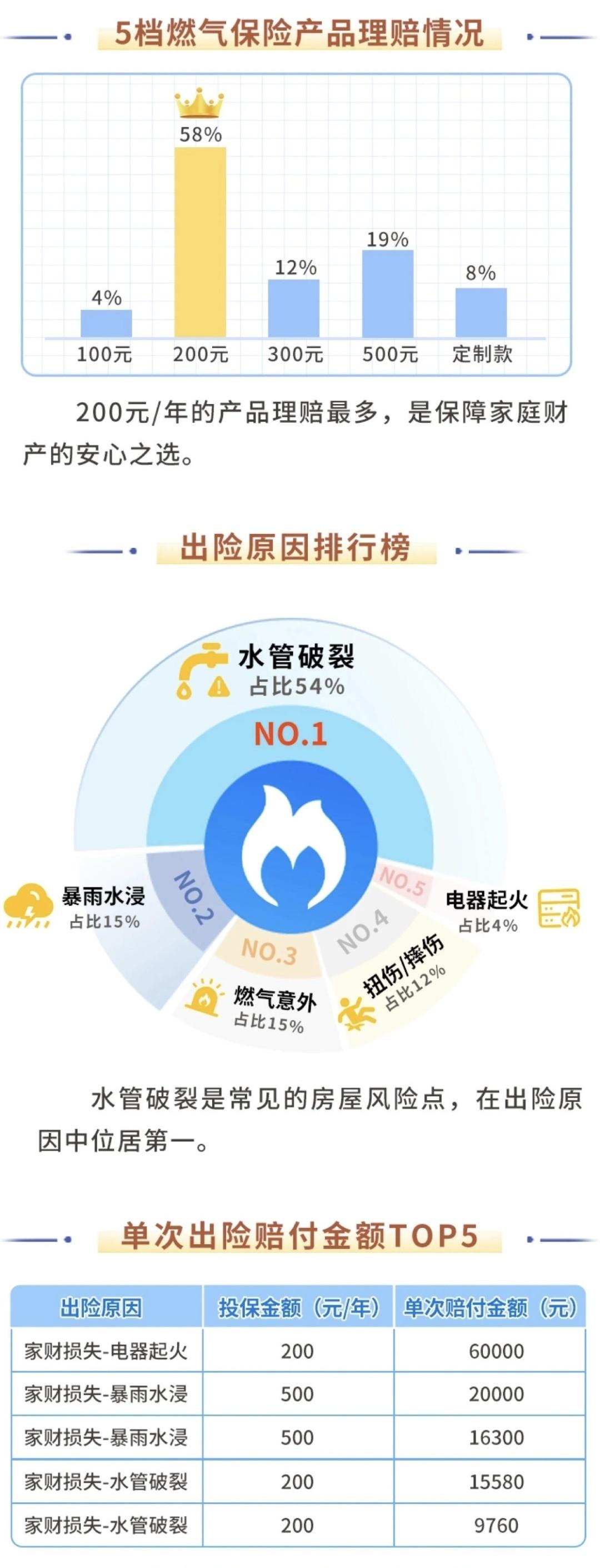 据悉,燃气保险是专门针对家庭用户、商户用户燃气事故理赔的保险,可保燃气人身意外、房屋损失等。该保险自愿投保,用户可以根据自己的需求选择不同产品方案。